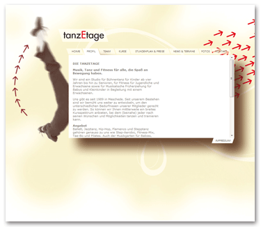 Gestaltung der Internetseite für eine Tanzschule.